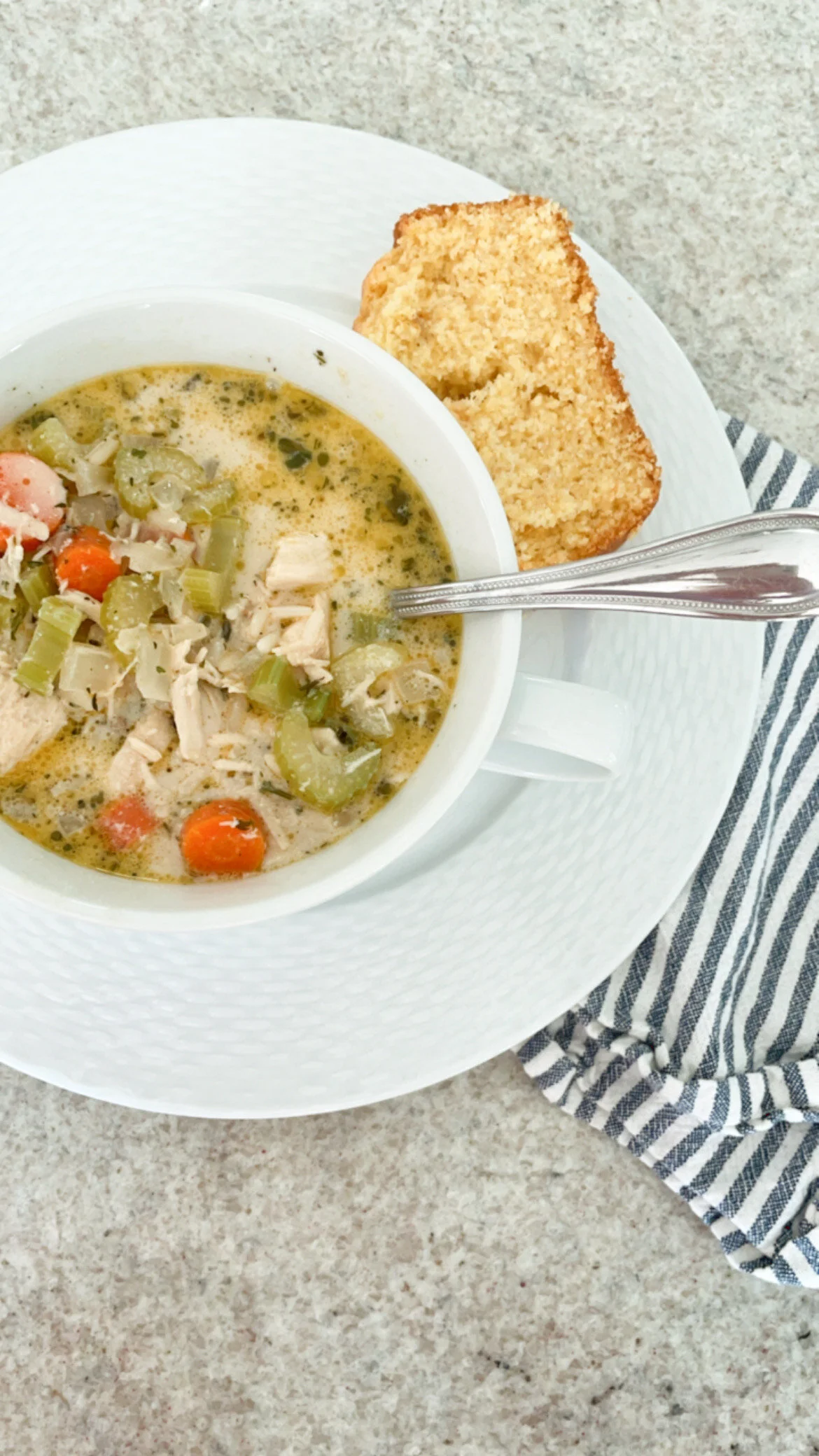 When the weather cools down, we always find ourselves craving this delicious chicken and rice soup recipe. After making a few different recipes and tweaking them, I finally perfected my own rendition that rivals any Panera bestseller. This recipe is simple to make in the slow cooker and always a big hit with our family- so much so that I make an extra large seven quart batch! We enjoy this soup about once a month during the fall and winter months. So, I hope your family loves it as much as ours!